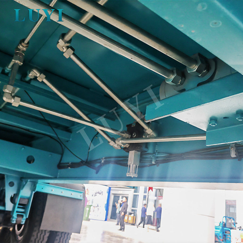 안정적인 다중 실린더 티핑 시스템: 트레일러 본체를 따라 분산된 일련의 강력하고 동기화된 HYVA 유압 실린더를 활용합니다. 이 다중 지점 리프팅 시스템은 부드럽고 안정적이며 제어된 측면 기울임 동작을 보장하여 섀시에 가해지는 응력을 최소화하고 안전성을 향상시킵니다.