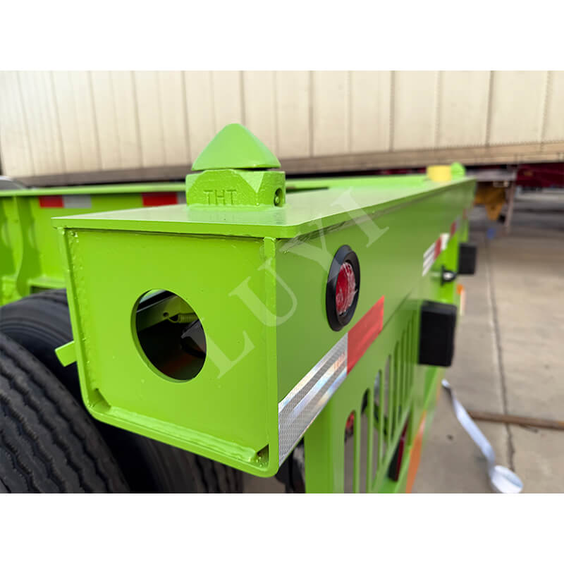 중국 산동성에서 시작된 Luyi 2축 화물 운반 컨테이너 골격 세미트레일러는 트럭용으로 특별히 설계된 효율적인 운송 장비로, 핵심 기능은 컨테이너의 안전한 운송에 중점을 두고 있습니다.