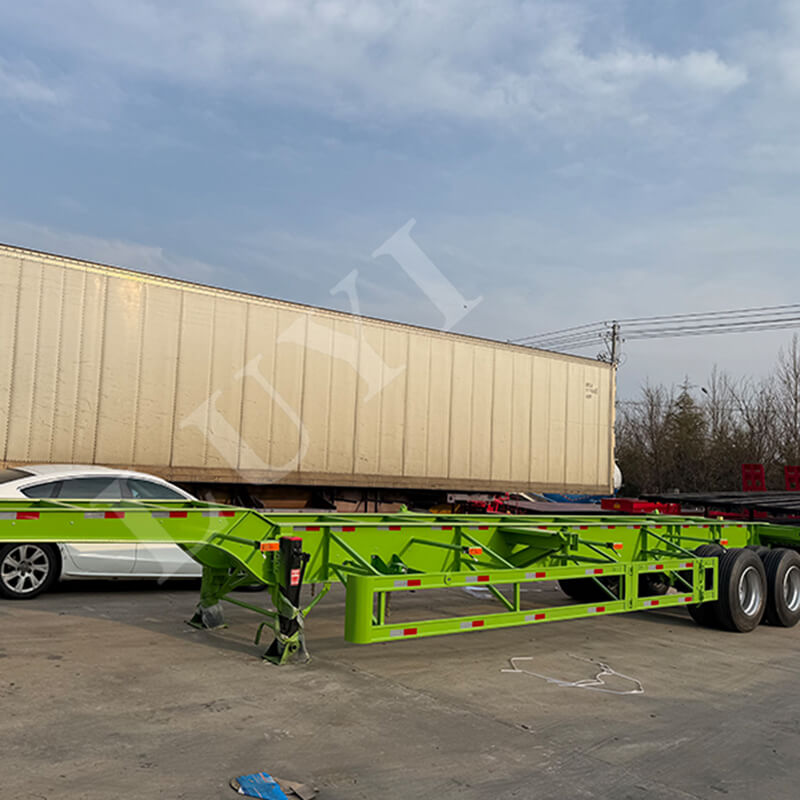 차량은 고품질 강철로 제작되어 안정적이고 내구성이 뛰어난 구조를 갖추고 있습니다. 최대 유효 탑재량은 40톤으로 20/40톤 컨테이너 운송에 적합합니다. 차체 크기는 14000x250x1800mm이며 Fuwa 브랜드 차축 2개와 옵션으로 제공되는 기계식 또는 에어 서스펜션이 장착되어 주행 안정성과 충격 흡수 성능을 모두 제공합니다. 다양한 도로 상황에 맞춰 12R22.5, 12.00R20, 11R22.5 사양의 타이어가 장착되어 있습니다. 90mm(폭)×13mm(두께)×10단 판스프링으로 하중 지지력이 더욱 강화되었으며, 28톤 아웃리거가 표준 적용되어 주차 안전성을 보장합니다.