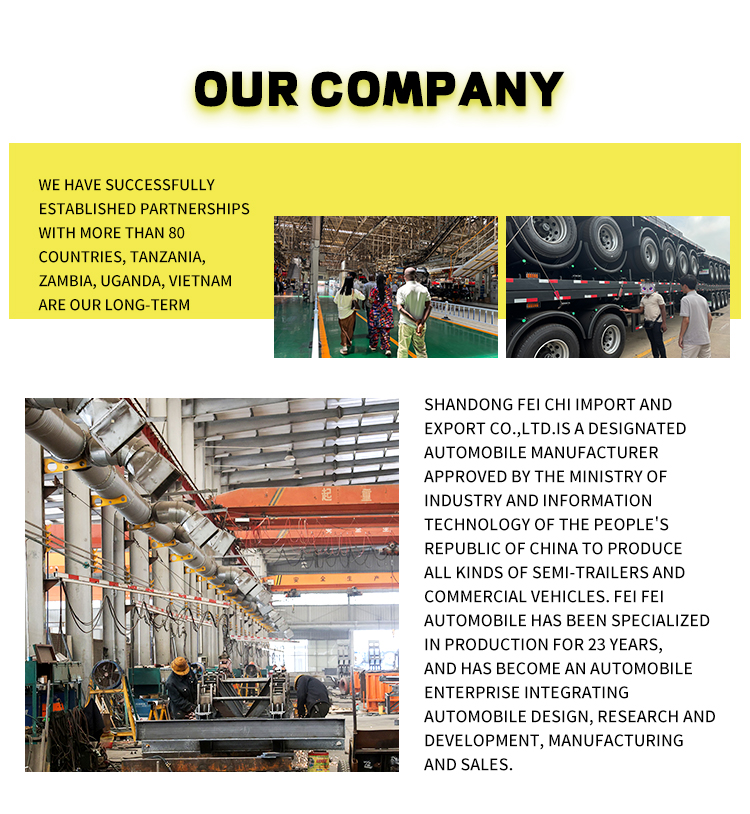 우리 공장은 트랙터뿐만 아니라 덤프 트럭, 스프링클러 트럭, 트럭 크레인, 믹서 트럭, 덤프 트레일러, 탱크 트레일러, 로우 베드 트레일러, 먼지 제거 트레일러 등도 생산합니다. 우리 공장은 규모가 크며 다양한 고객 요구 사항에 따라 다양한 제품을 맞춤 설정할 수 있습니다.