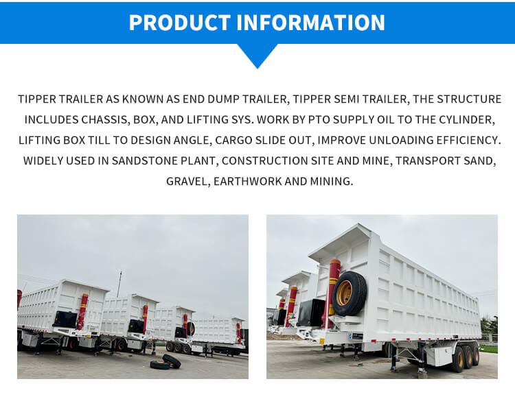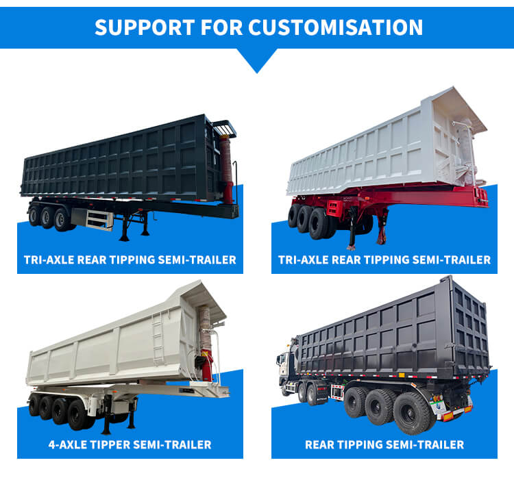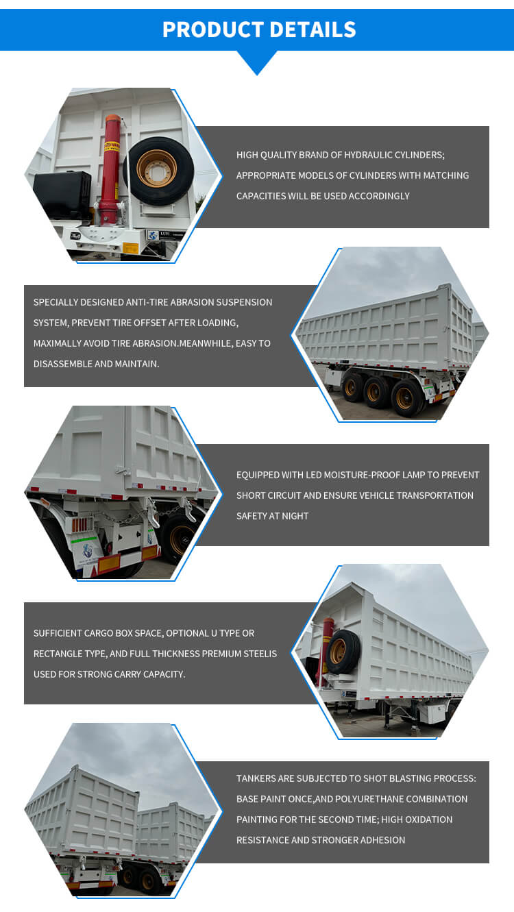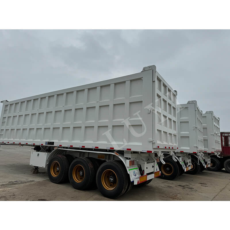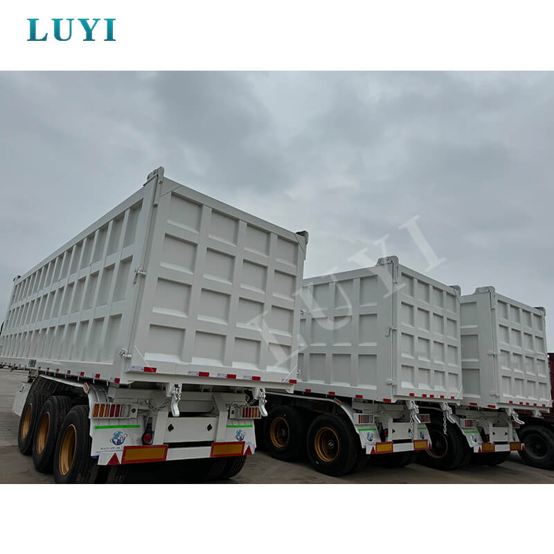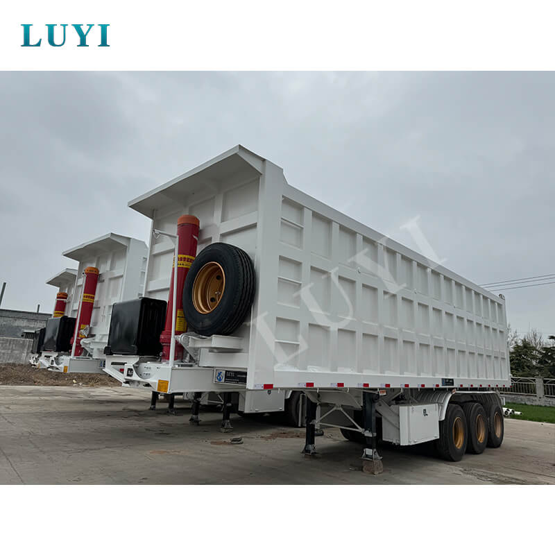 LUYI의 이 3축 40-60톤 유압식 리어 덤프 세미 트레일러는 모래와 자갈 운송에 맞게 제작되었습니다. 중국 산동이 원산지이며 고품질 강철로 제작되어 무거운 하중을 견딜 수 있으며 최대 탑재하중은 30,000kg이 넘습니다.