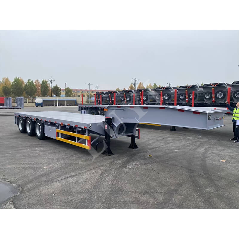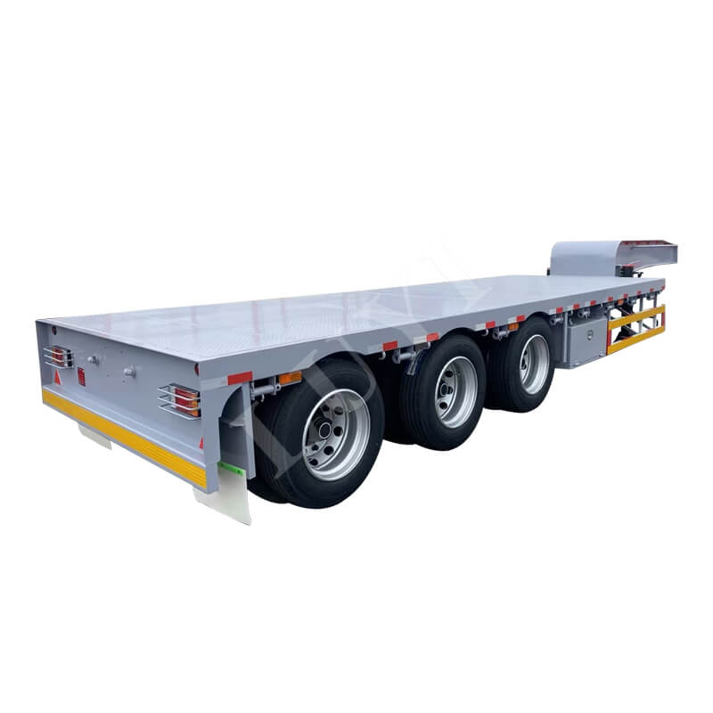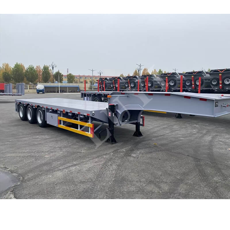 트레일러는 11500/12500/13000×3000×1750mm의 크기를 제공하며 맞춤 설정도 가능합니다. 90mm(폭)×13/16mm(두께)×10겹의 판스프링이 장착되어 있으며, 축은 13/16톤 FUWA 브랜드 중에서 선택할 수 있어 안정적이고 신뢰할 수 있는 작동을 보장합니다. 제동 시스템은 민감한 반응을 위해 릴레이 밸브를 사용합니다. 킹핀은 JOST 2인치(50mm) 또는 3.5인치(90mm) 사양이며, 랜딩기어는 조작이 용이하도록 JOST 28톤 2단 변속형을 채택한다. 다양한 운송 시나리오에 맞게 색상을 맞춤 설정할 수 있습니다.