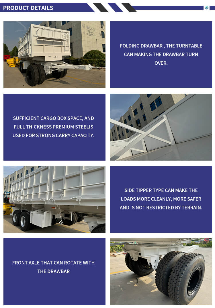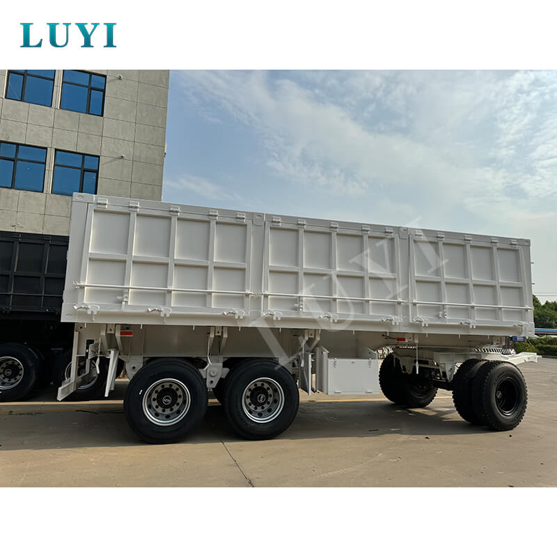 중국 산동에서 시작된 LUYI 3축 40톤 화물 운송 트랙터 사이드 팁 덤프 트레일러는 모래 및 자갈 운송을 위해 특별히 설계된 풀 트레일러형 트럭 트레일러입니다. 트레일러 본체는 고강도 강철로 제작되었으며 옵션으로 제공되는 2-4축 구성 및 기계식/에어 서스펜션과 결합됩니다. 12R22.5 타이어에 적용되어 안정적인 하중 지지력과 강력한 통행성을 보장하며 최대 유효 탑재량은 30000kg이 넘고 고하중 요구 사항을 쉽게 충족합니다.
