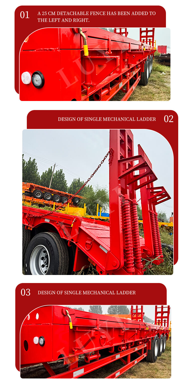 중국 산둥성 브랜드인 LUYI의 3축 40톤 구즈넥 로우베드 세미트레일러는 고성능 신품 화물 장비입니다. 고강도 T700/Q345 강철로 제작된 이 제품의 크기는 1100030001800mm이고 최대 탑재량은 30000kg을 초과하여 탁월한 내하중 성능을 제공합니다.