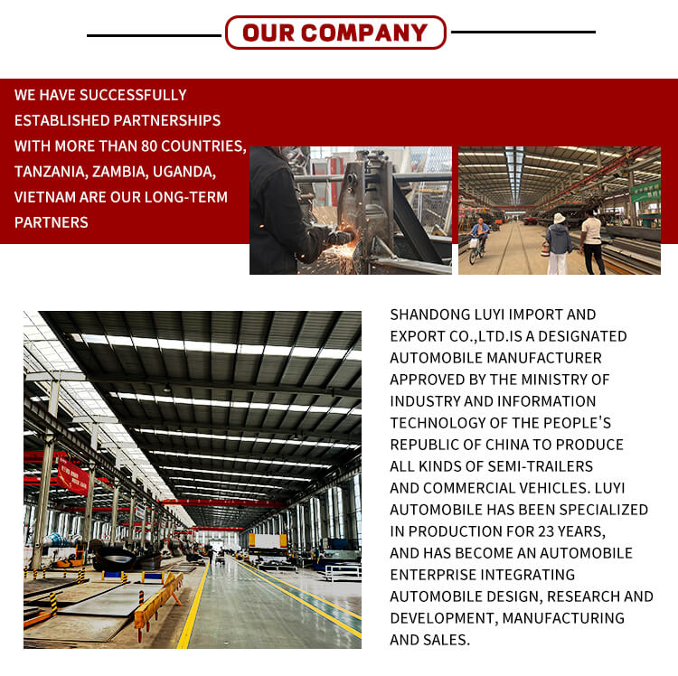 우리 공장은 트랙터뿐만 아니라 덤프 트럭, 스프링클러 트럭, 트럭 크레인, 믹서 트럭, 덤프 트레일러, 탱크 트레일러, 로우 베드 트레일러, 먼지 제거 트레일러 등도 생산합니다. 우리 공장은 규모가 크며 다양한 고객 요구 사항에 따라 다양한 제품을 맞춤 설정할 수 있습니다.
