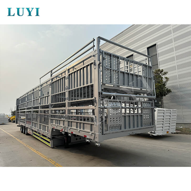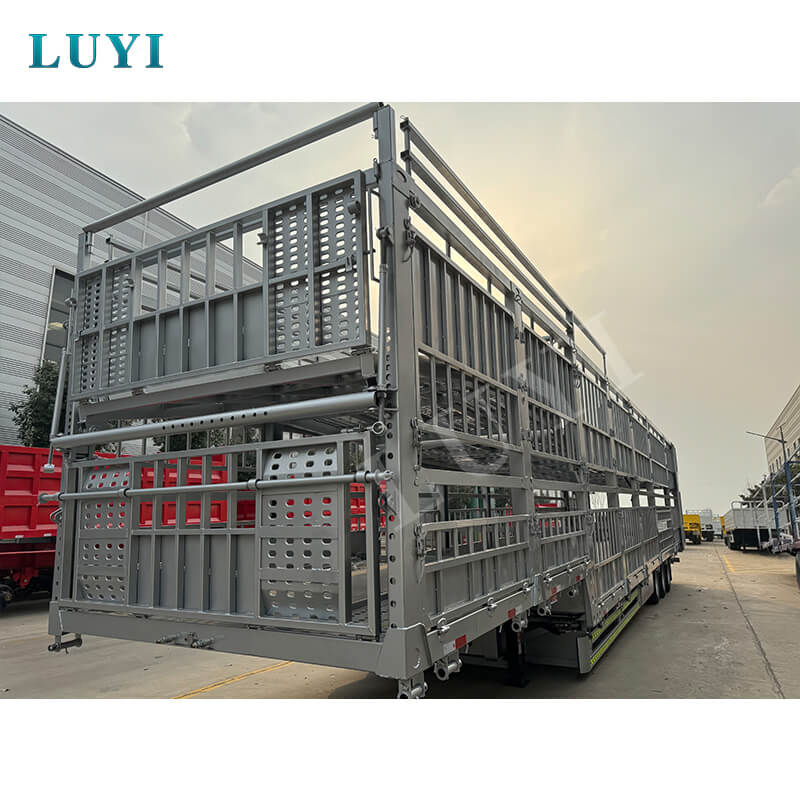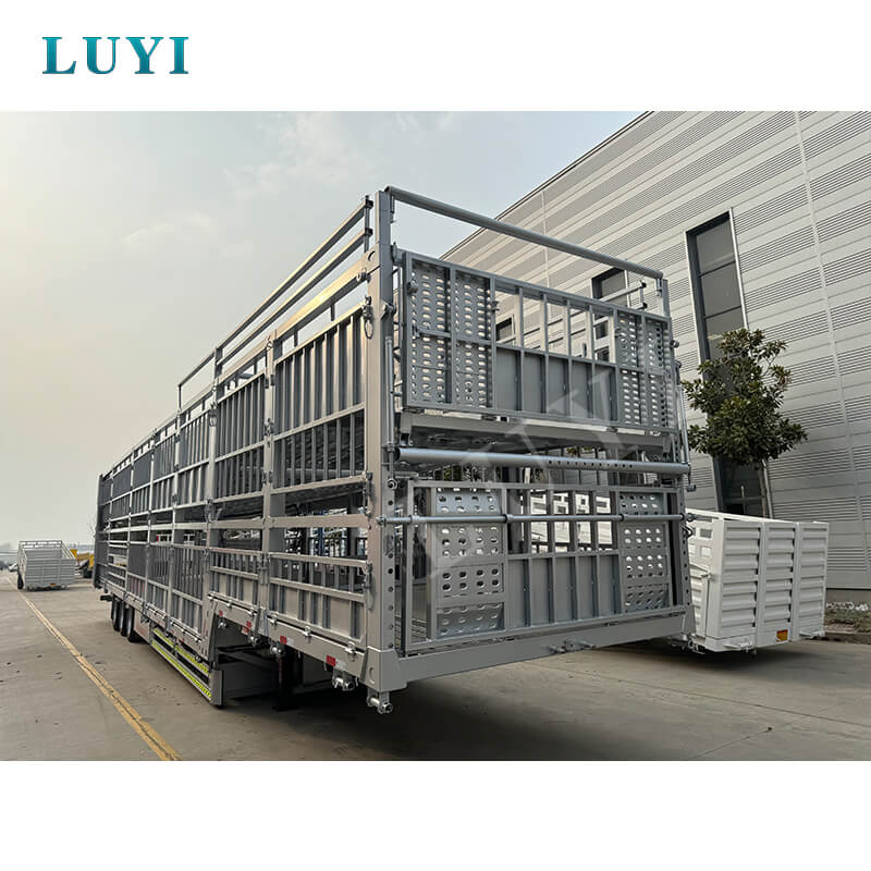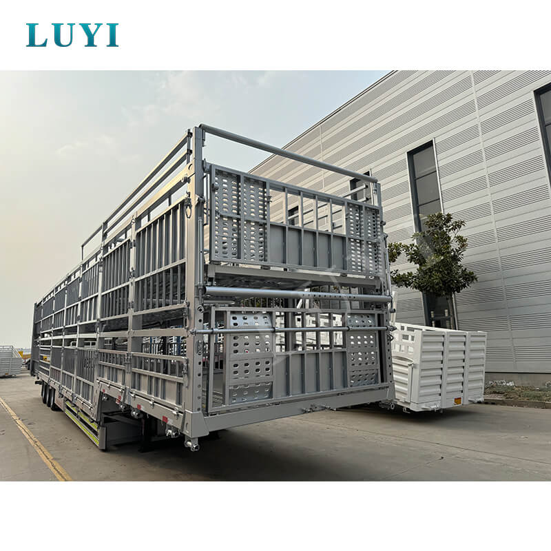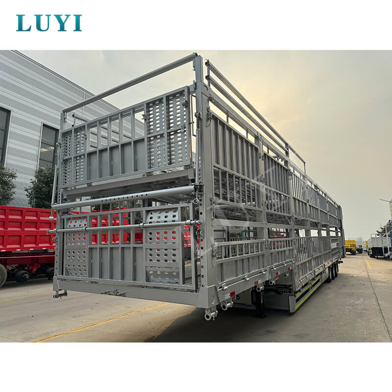 중국 산동성에서 시작된 LUYI 3축 60톤 더블 레이어 스테이크 세미트레일러는 가축 및 대량 화물 운송 전용 고효율 트럭 세미트레일러입니다. ISO, CCC, BV, CE 및 DOT를 포함한 여러 인증을 보유하여 규정을 준수하고 신뢰할 수 있는 품질을 보장합니다.