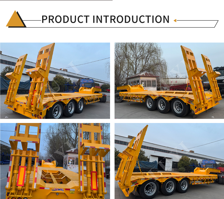 3개의 프리미엄 Fuwa 또는 BPW 액슬이 장착된 이 트레일러는 다양한 도로에서 안정적인 주행을 위해 유연한 서스펜션 옵션(기계식 또는 공기식)을 제공합니다. 12R22.5/12.00R20/11R22.5 타이어 선택, 중장비의 편리한 적재/하역을 위한 유압 사다리, 안전한 주차를 위한 표준 28톤 랜딩 기어가 함께 제공됩니다. 2인치(50mm) 또는 3.5인치(90mm) JOST 킹 핀은 트랙터와의 견고한 연결을 보장하는 동시에 사용자 정의 가능한 색상은 개인화 요구 사항을 충족합니다. 내구성이 뛰어나고 적응력이 뛰어나 효율적인 무거운 화물 운송에 이상적입니다.