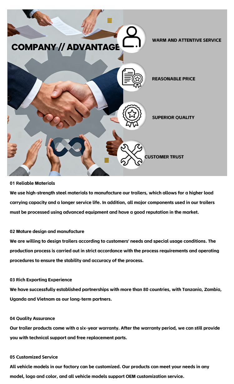 귀하의 실제 운송 요구 사항에 따라 맞춤형 견적을 받으려면 문의 사항을 보내주십시오. 트레일러 유형, 화물 또는 탑재량, 도로 상황, 목적지, 수량을 알려주시면 최대한 신속하게 적절한 권장 사항을 제공해 드리겠습니다.