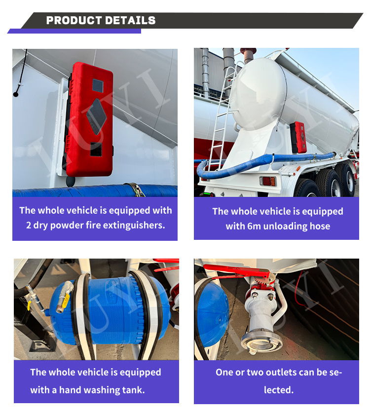 중국 산동의 고품질 제조 기지에서 탄생한 LUYI 브랜드 3축 30입방 분말 탱크 세미트레일러는 건조 벌크 밀가루 운송 시나리오에 맞게 맞춤 제작되었습니다. 차량 전체는 고강도 탄소강으로 제작되었으며, 메인 빔은 Q345B/ST52-3 표준 강철을 사용하여 내구성과 내하중 안정성을 겸비했습니다. 12000mm*2500mm*3980mm의 과학적 크기 설계는 다양한 운송 시나리오에 적합합니다.