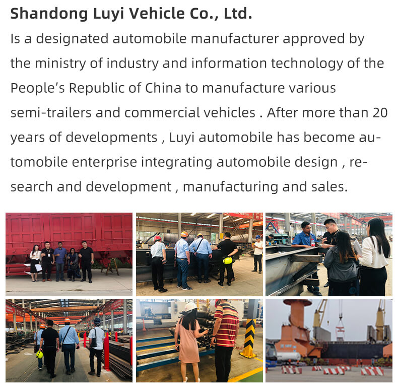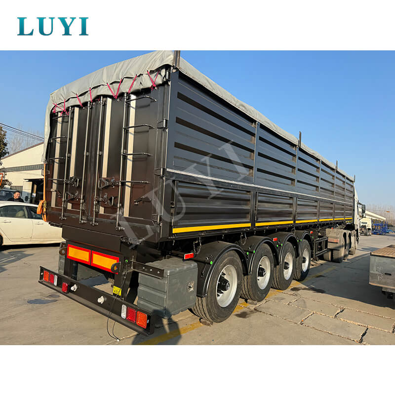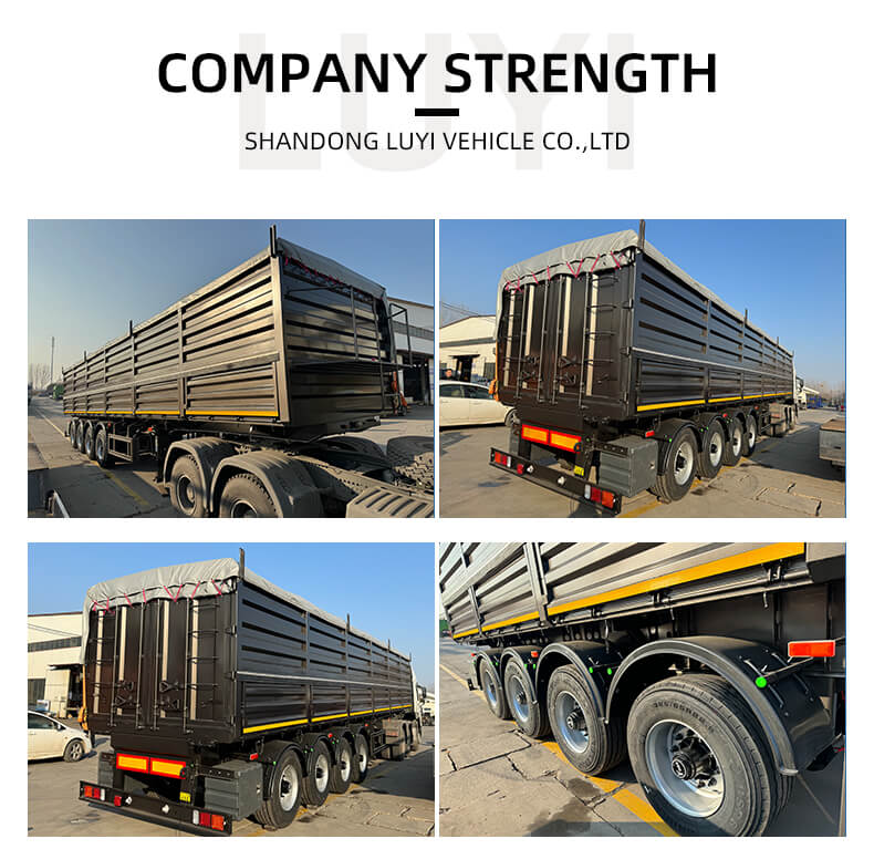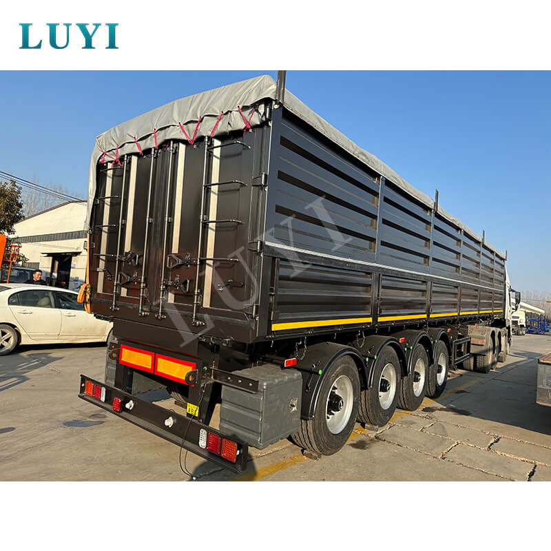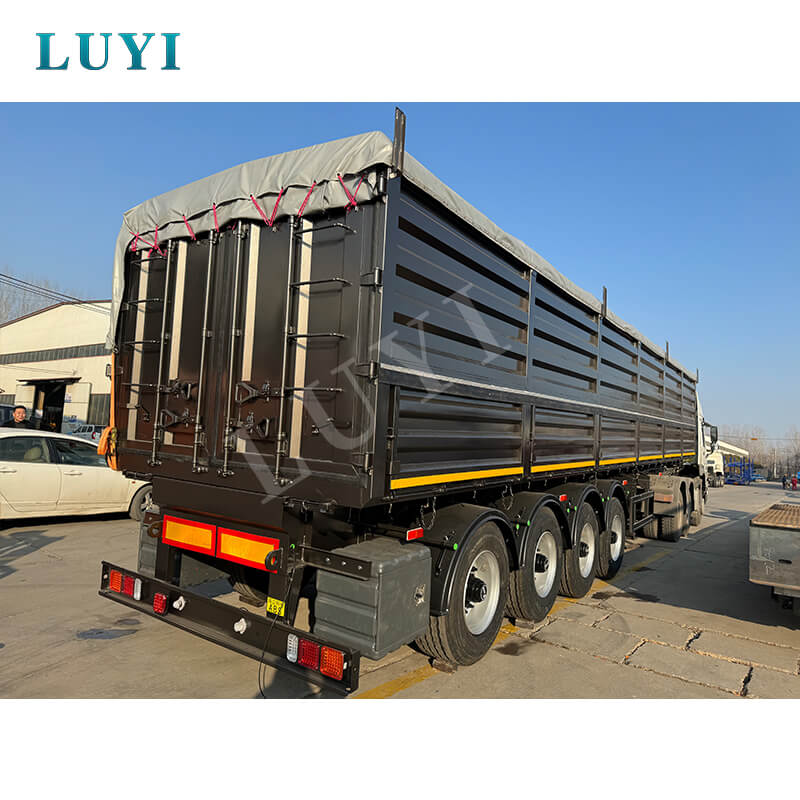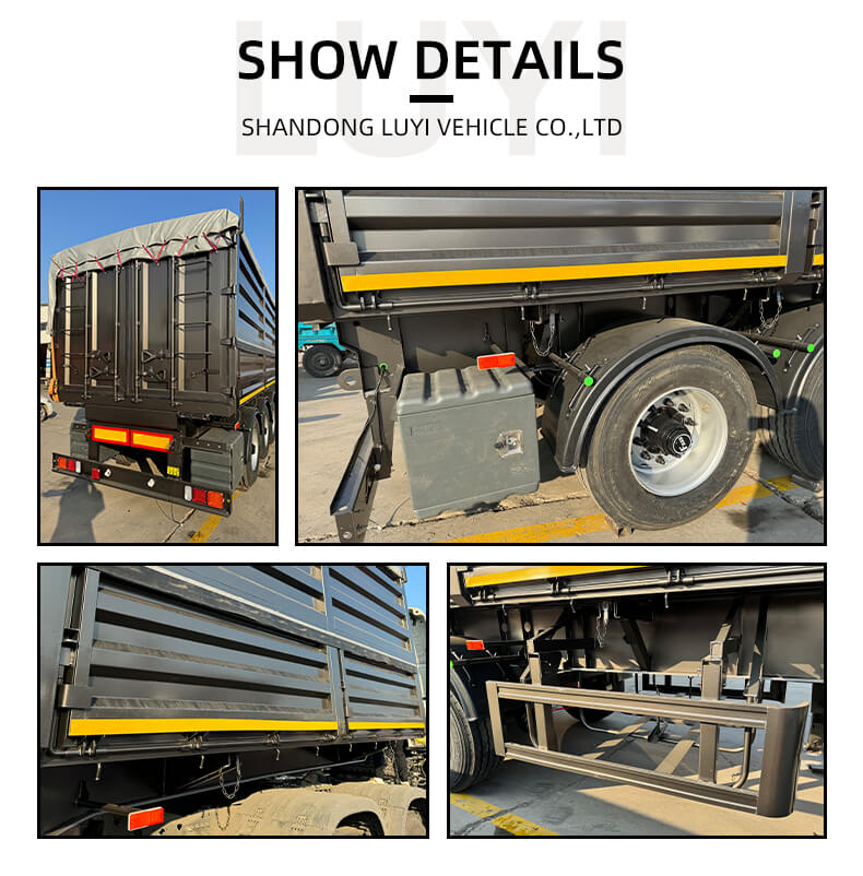 LUYI 브랜드의 이 4축 40피트 덤프 세미 트레일러는 모래, 석재 및 석탄 운반에 맞게 맞춤화된 고성능 운송 차량입니다. 중국 산동에서 시작된 이 제품은 견고한 구조와 실용적인 기능을 결합하여 무거운 운송 요구 사항을 충족합니다.