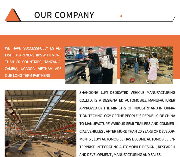 우리 공장은 트랙터뿐만 아니라 덤프 트럭, 스프링클러 트럭, 트럭 크레인, 믹서 트럭, 덤프 트레일러, 탱크 트레일러, 로우 베드 트레일러, 먼지 제거 트레일러 등도 생산합니다. 우리 공장은 규모가 크며 다양한 고객 요구 사항에 따라 다양한 제품을 맞춤 설정할 수 있습니다.