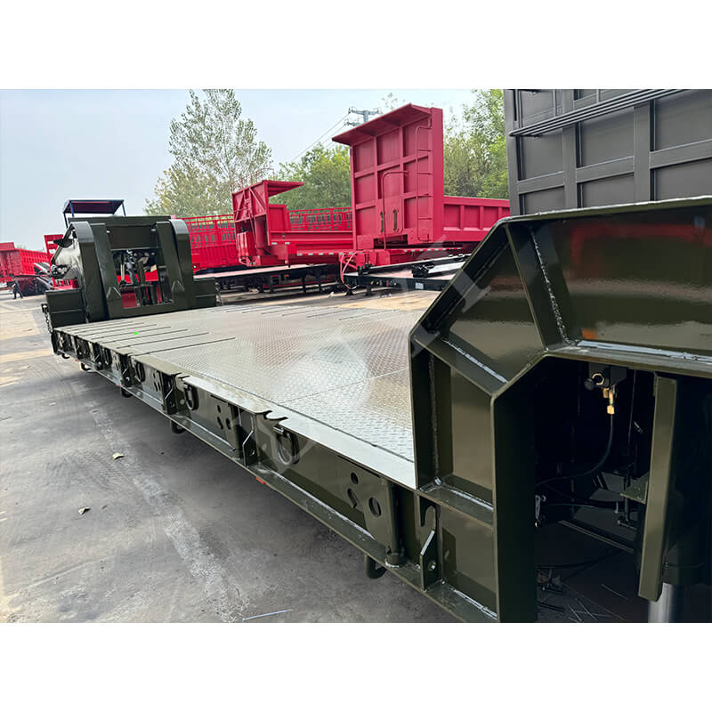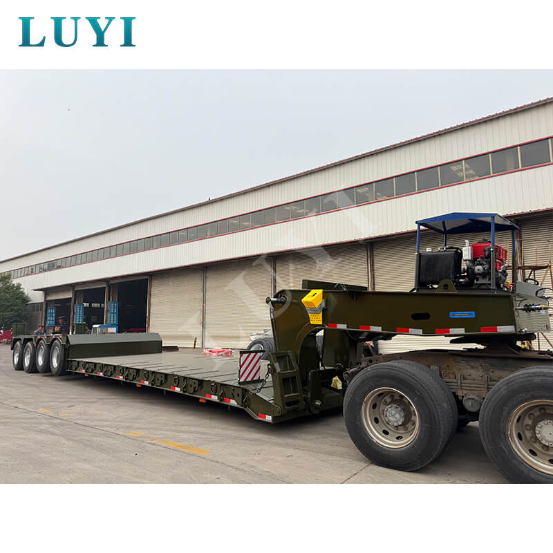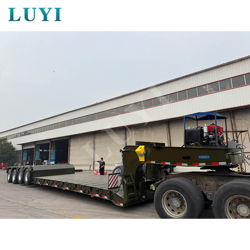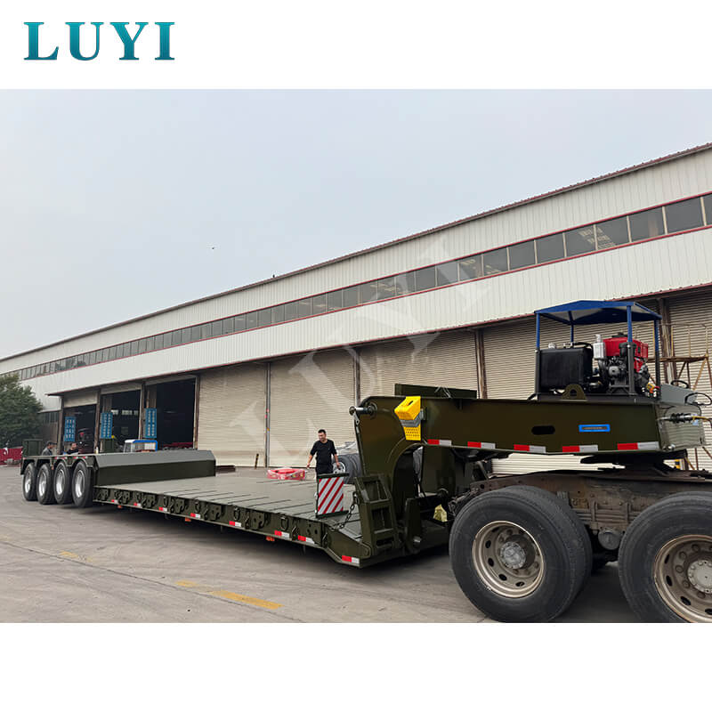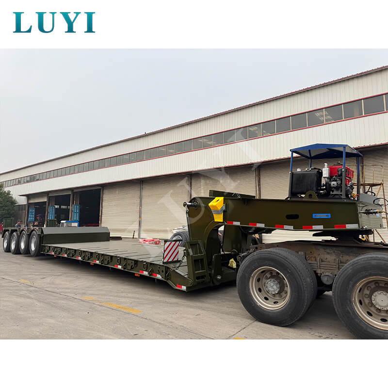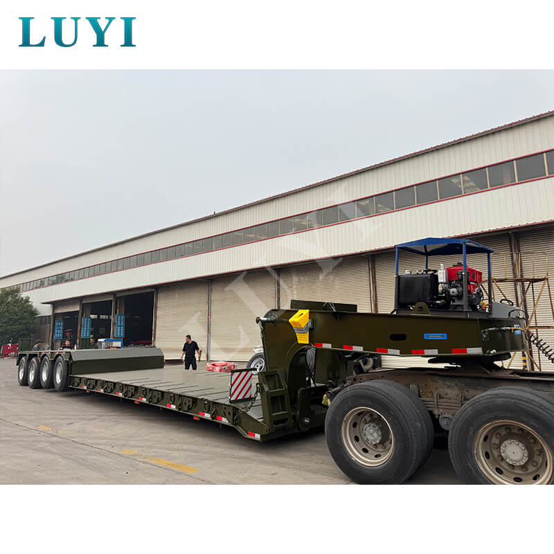 Luyi 4축 분리형 구즈넥 150톤 로우 베드 세미트레일러는 중국 산둥성에서 시작되었으며 중장비 운송을 위해 특별히 설계된 고품질 세미트레일러입니다. 고급강으로 제작되어 뛰어난 내하중을 자랑하며, 최대 유효 탑재량은 100톤에 달해 다양한 종류의 중장비를 안정적으로 운반할 수 있습니다.