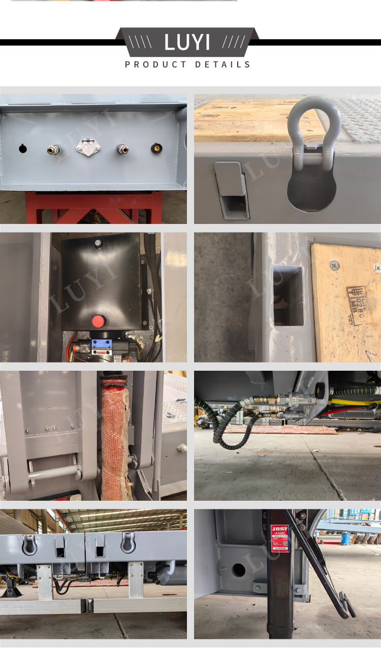 중국 산동성에서 생산되는 LUYI 4축 텔레스코픽 6미터 Lowboy 세미트레일러는 뛰어난 성능을 갖춘 최신 트럭 트레일러입니다. 본체는 고품질 강철로 제작되어 튼튼하고 내구성이 뛰어난 구조를 갖추고 있으며, 최대 유효 탑재량은 20,001kg~25,000kg으로 다양한 물품의 운송 요구를 충족할 수 있습니다.