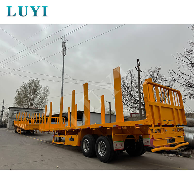 LUYI의 2축 40톤 기둥 플랫베드 트레일러는 광범위한 사용자 정의 옵션을 통해 목재 운송에 맞게 제작되었습니다. 통나무, 목재 또는 기타 목재 제품에 맞게 찬장 높이(30~80cm 사용 가능)를 조정하고, 향상된 그립감을 위해 체크판 강철 또는 미끄럼 방지 코팅 데크 중에서 선택하세요.