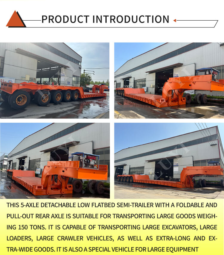 중국 산동에서 생산되는 LUYI 5축 분리형 구즈넥 로우베드 세미트레일러는 초중량 화물 수요에 맞춘 고성능 대형 운송 차량입니다.