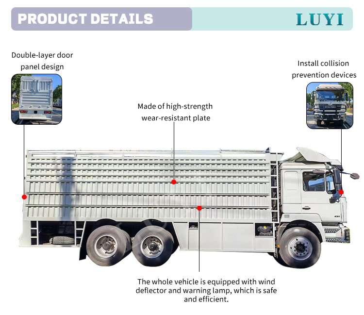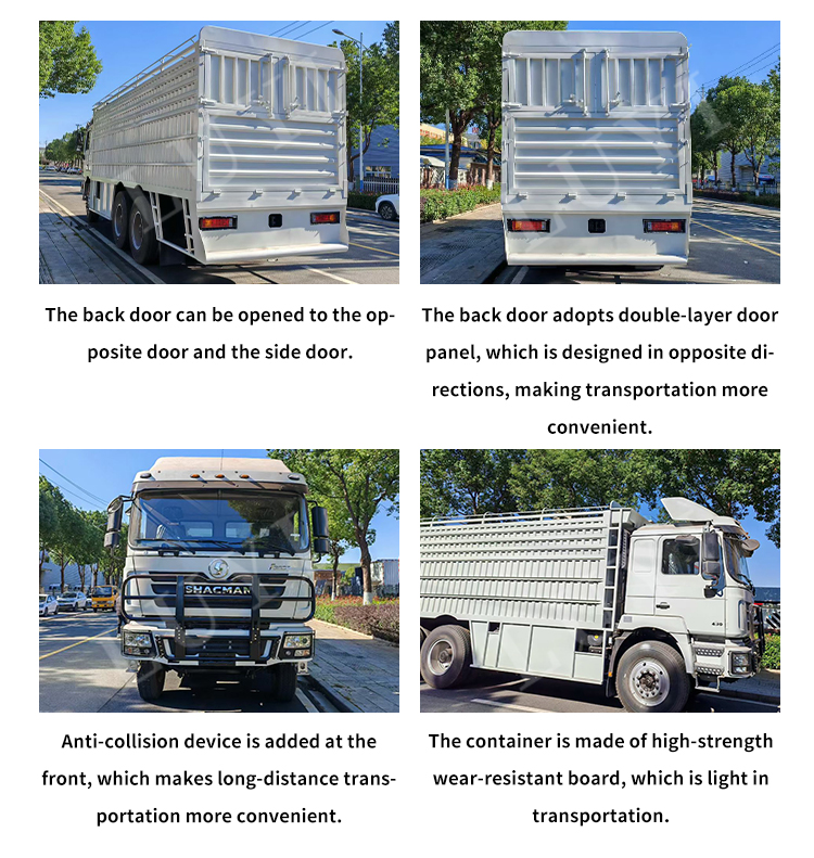 정격 적재 용량은 21-30T이고 차량 총 중량은 10001-15000kg으로 다양한 화물 작업을 쉽게 처리할 수 있습니다. 화물 탱크의 크기는 5.62.51.5m이며 길이는 5.3~6.2m 사이에서 조정 가능합니다. SINOTRUK 수동 기어박스 및 12.00R20 내구성 타이어와 결합되어 LHD 및 RHD 사용자 정의를 모두 지원하며 차체 색상을 고객 요구에 맞게 조정할 수 있습니다.