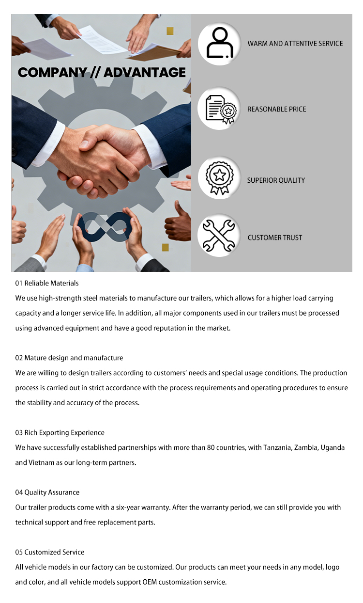 트럭에는 기본적인 운전 편의성과 안전을 보장하기 위해 수동 에어컨과 후방 카메라가 함께 제공됩니다. 현장 설치, 영상 기술 지원, 해외 콜센터 등 포괄적인 애프터 서비스를 제공하여 걱정 없는 구매 및 사용 경험을 선사합니다.