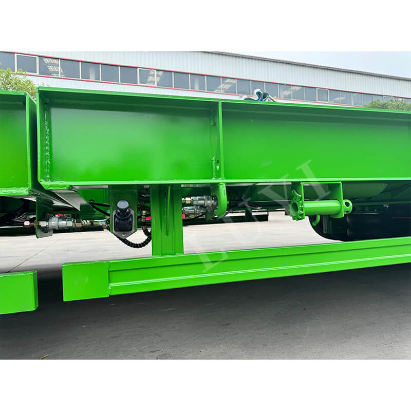 13톤 후와(Fuwa) 브랜드 액슬과 기계식 서스펜션, 듀얼라인 브레이크 시스템을 탑재해 민감한 제동 반응과 안전한 주행을 제공한다. 11.00r20, 12r22.5, 315, 385 등 다양한 타이어 사양과 호환되며 최대 유효 탑재량은 60,000kg, 적재 용량은 100~120톤입니다. 표준 28톤 아우트리거로 구성되며 옵션으로 2인치(50mm) 또는 3.5인치(90mm) JOST 킹핀이 함께 제공됩니다. 색상을 사용자 정의할 수 있으며 중부하 운송 시나리오에 이상적인 선택입니다.