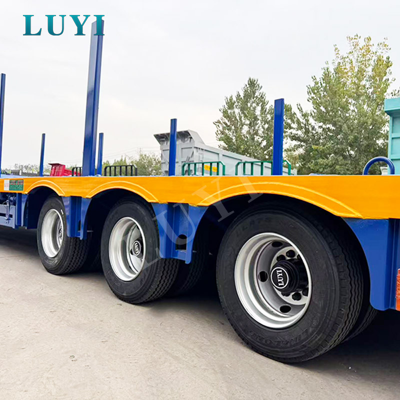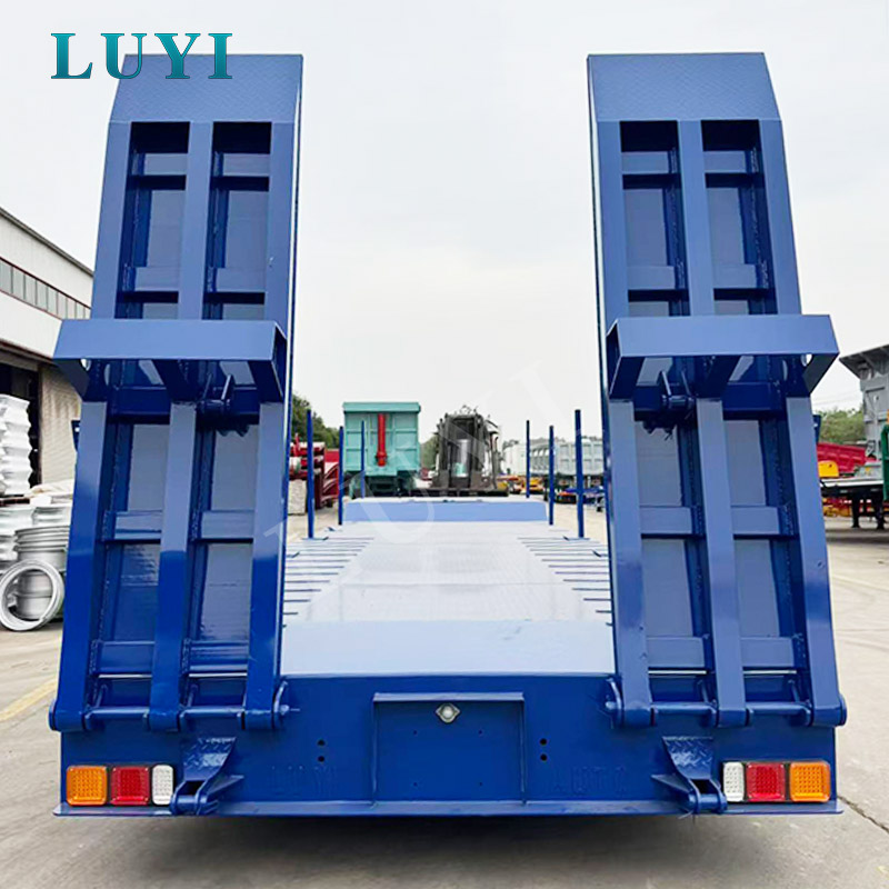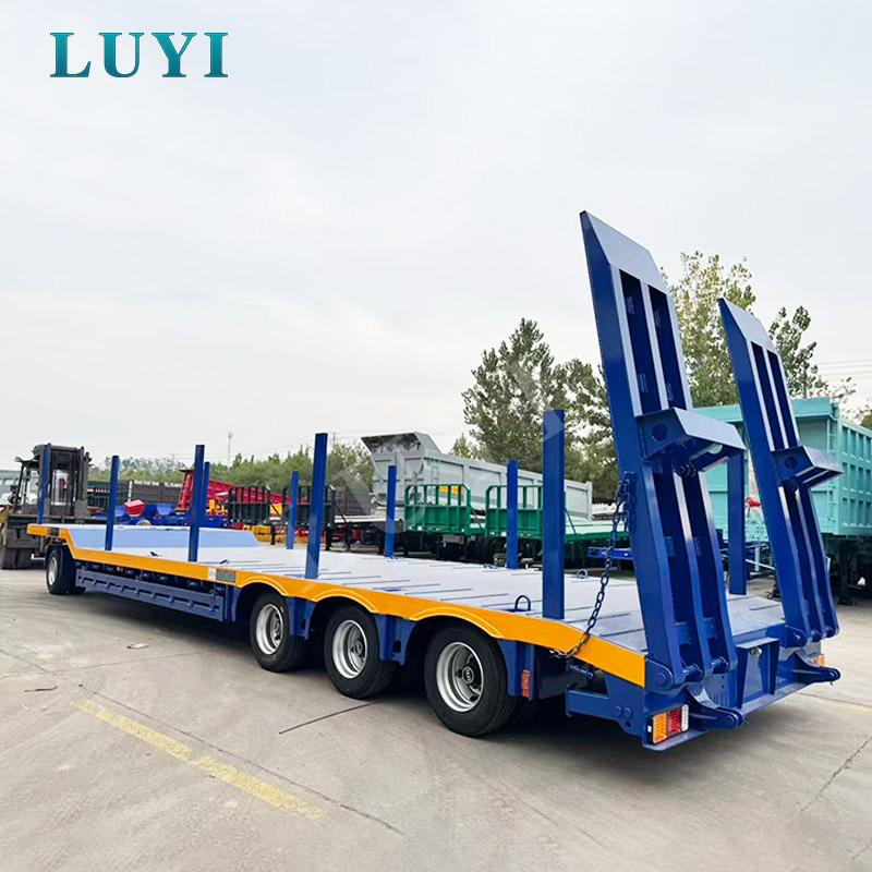 LUYI 3 Axle Lowbed Truck Semi Trailer는 중국 산동에서 시작된 고성능 운송 차량으로 굴삭기와 같은 대형 화물 운송용으로 설계되었습니다.