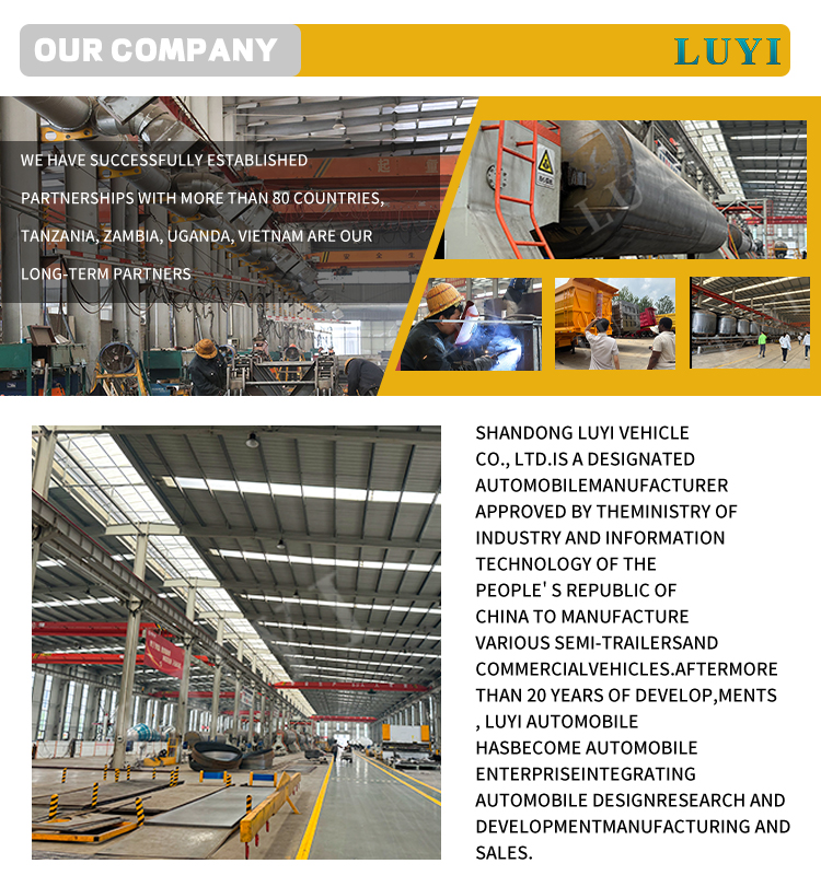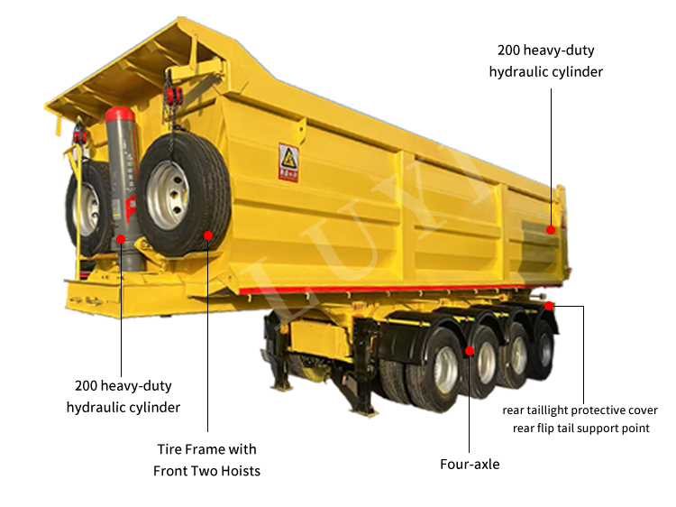 바디 컬러는 개인화된 맞춤화를 지원하여 다양한 고객의 브랜드 디스플레이 및 사용 요구 사항을 완벽하게 충족합니다. 품질에 대한 원래 열망을 고수하면서 LUYI는 성숙한 제조 공정과 엄격한 품질 검사 표준을 통해 이 4축 후방 덤프 세미 트레일러를 대형 운송 분야의 신뢰할 수 있는 파트너로 만들어 글로벌 고객에게 효율적이고 안전하며 경제적인 운송 솔루션을 제공합니다.