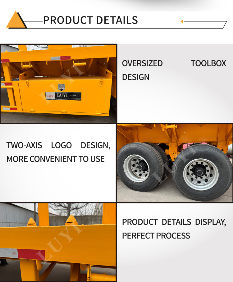 LUYI의 2축 40톤 기둥 플랫베드 트레일러는 광범위한 사용자 정의 옵션을 통해 목재 운송에 맞게 제작되었습니다. 통나무, 목재 또는 기타 목재 제품에 맞게 찬장 높이(30~80cm 사용 가능)를 조정하고, 향상된 그립감을 위해 체크판 강철 또는 미끄럼 방지 코팅 데크 중에서 선택하세요.