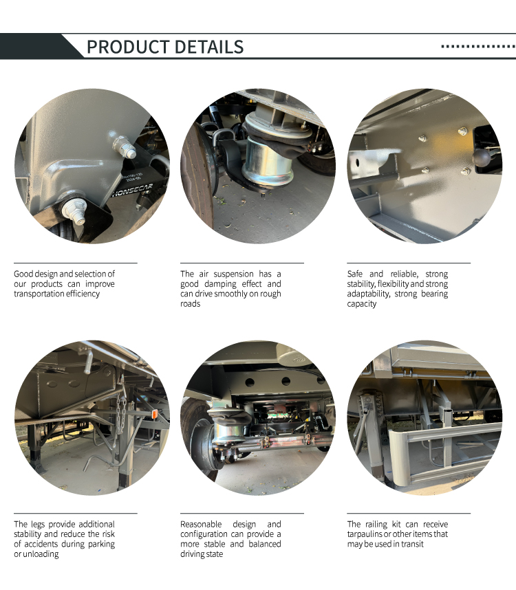 LUYI 60톤급 4축 사이드 티퍼 세미 트레일러는 광산 및 인프라 프로젝트와 같은 시나리오에서 대형 대량 화물 운송을 위해 맞춤화되었습니다. 측면 기울어지는 유압 하역 구조를 채택하여 좁은 공간에서 신속하게 하역할 수 있으며 몇 분 안에 구획 비우기를 완료하여 화물 회전 효율성을 크게 향상시킵니다. 핵심 하중 지지 구성 요소는 고강도 내구성 강철로 제작되었으며 4축 설계 및 에어 서스펜션 에어백과 짝을 이룹니다. 이는 60톤 무거운 화물의 압력을 분산시켜 규제 요건을 충족할 뿐만 아니라, 화물에 따라 충격흡수 경도를 조절해 화물의......