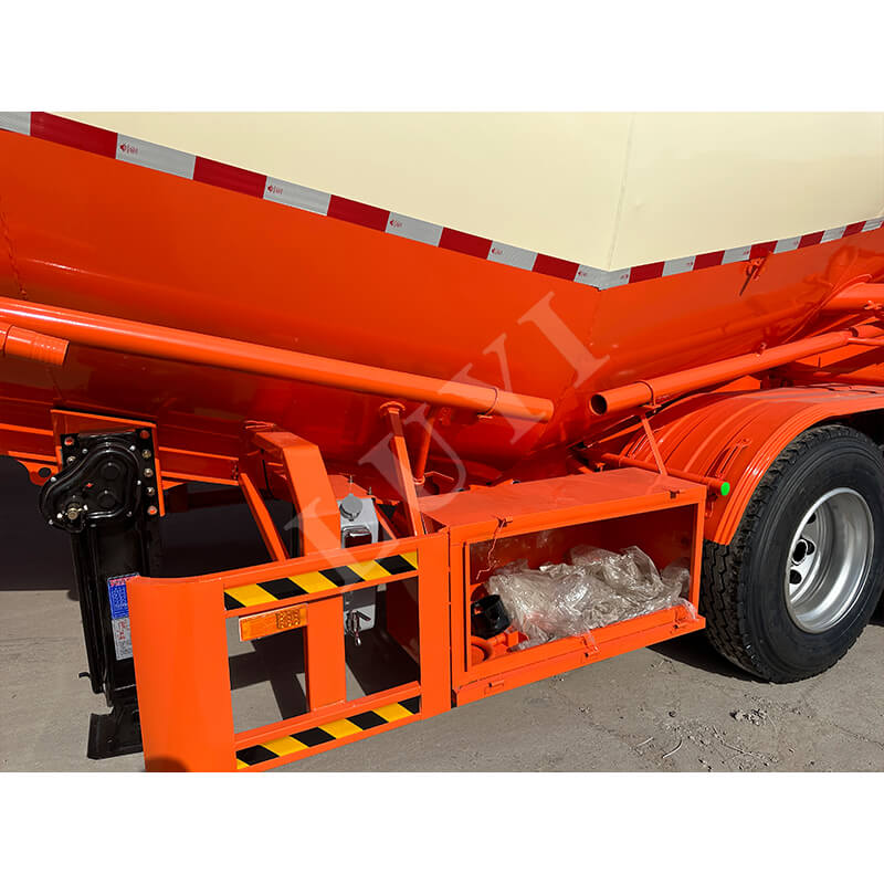 트레일러 크기는 10500×2550×4000mm입니다. 기계식/에어 서스펜션 2가지 옵션을 갖추고 있으며, 3축 안정 구조와 28톤의 헤비듀티 아웃리거가 결합되어 주차 및 주행 시 안정성을 보장합니다. 듀얼 라인 브레이크 시스템은 안전성을 강화합니다. 타이어 옵션에는 11.00r20, 12r22.5 등 다양한 사양이 포함되며 킹핀은 JOST 50mm / 90mm의 두 가지 모델로 제공됩니다. 또한 필요에 따라 색상을 맞춤화할 수 있어 다양한 운송 시나리오와 미적 요구 사항에 완전히 적응할 수 있어 벌크 시멘트 운송을 위한 신뢰할 수 있는 장비가 됩니다.