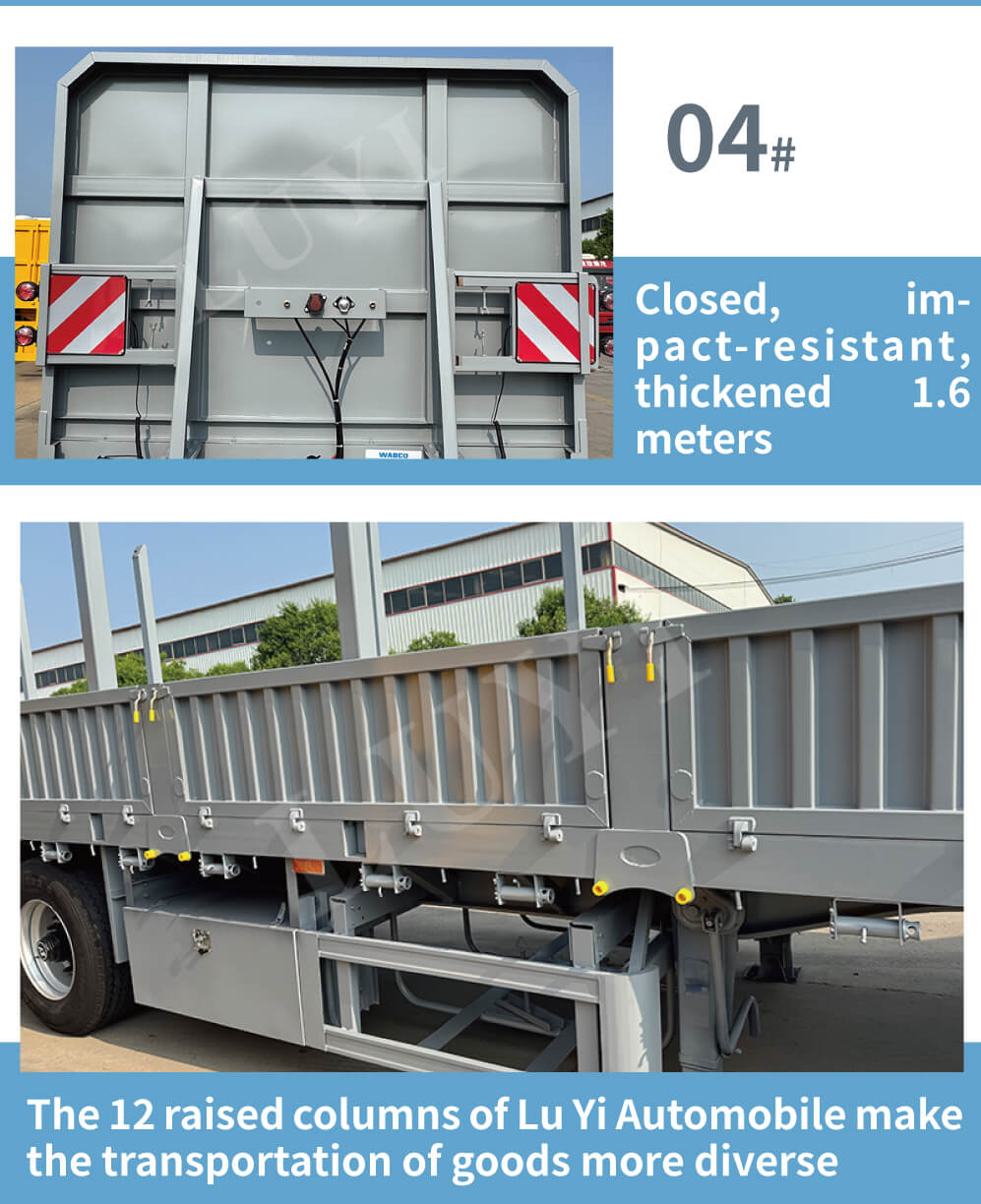 중국 산둥에 본사를 둔 브랜드인 LUYI의 기둥이 있는 3축 측벽 세미트레일러는 벌크 화물 및 컨테이너 운송을 위한 최적의 선택입니다. 고품질 강철로 제작된 이 제품은 12500x2500x1600mm의 정확한 치수와 60톤의 최대 탑재량을 갖추고 있으며 강력한 지지력으로 다양한 중장비 운송 요구 사항을 쉽게 충족할 수 있습니다.