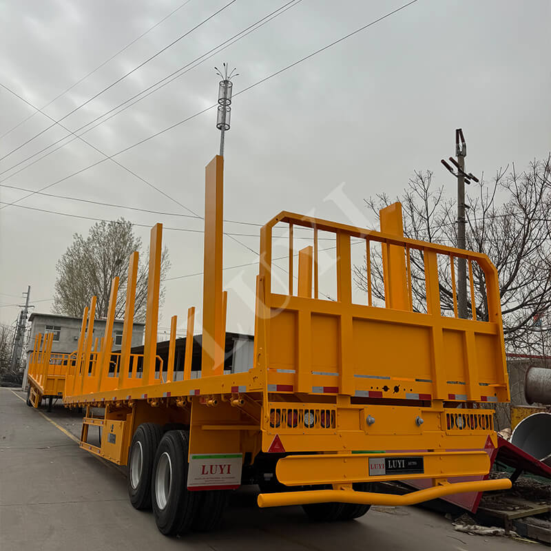 LUYI의 2축 40톤 기둥 플랫베드 트레일러는 광범위한 사용자 정의 옵션을 통해 목재 운송에 맞게 제작되었습니다. 통나무, 목재 또는 기타 목재 제품에 맞게 찬장 높이(30~80cm 사용 가능)를 조정하고, 향상된 그립감을 위해 체크판 강철 또는 미끄럼 방지 코팅 데크 중에서 선택하세요.