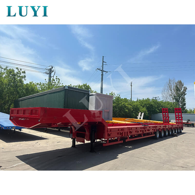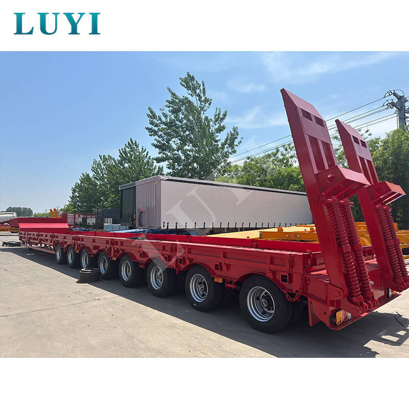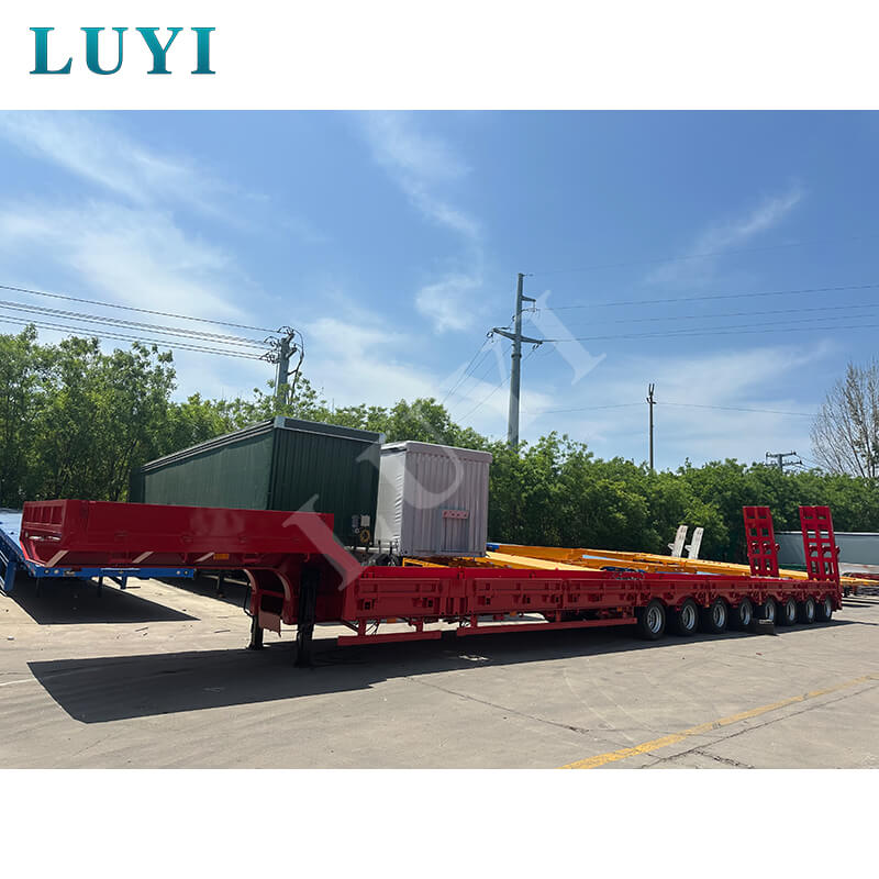 중국 산동에서 시작된 LUYI의 8축 17m 확장형 구즈넥 로우베드 세미트레일러는 중장비 운송을 위해 특별히 설계된 고성능 세미트레일러입니다.