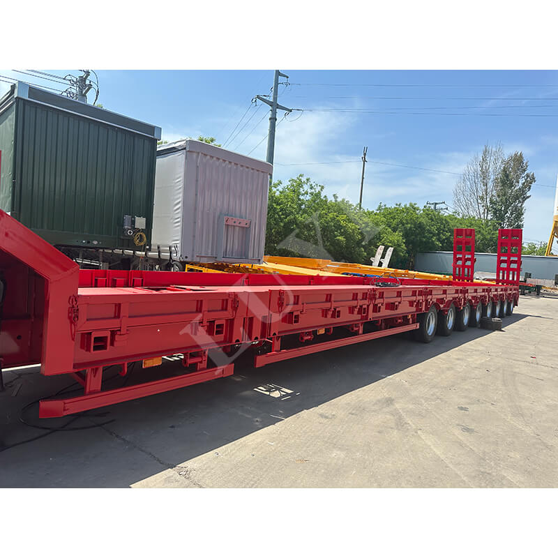 고품질 탄소강 또는 알루미늄으로 제작되어 내구성과 경량 요구 사항의 균형을 이루고 최대 100톤의 탑재량을 자랑하여 다양한 중장비 운송 시나리오를 쉽게 처리할 수 있습니다. 8축 디자인을 갖춘 이 차량은 기계식 서스펜션 또는 에어 서스펜션 시스템과 결합된 Fuwa 또는 BPW 브랜드 액슬 옵션을 제공하여 주행 안정성과 화물 안전을 보장합니다. 다양한 도로 조건에 적합한 12R22.5, 12.00R20, 11R22.5의 세 가지 타이어 사양을 사용할 수 있습니다.