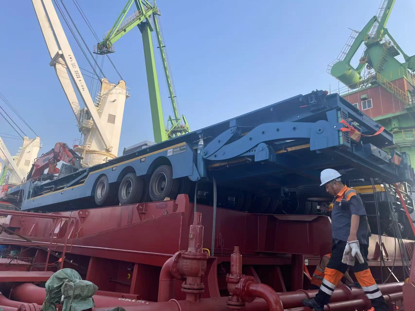 초가을, 산둥성의 한 국제항은 분주하게 움직였습니다. 수십 명의 루이3축 4피트 플랫베드 세미트레일러터미널에 질서있게 주차했습니다. 세관 검사, 안전 강화 등 여러 절차를 거친 후 플랫베드 세미트레일러는 전문 호이스팅 장비를 통해 천천히 해상 화물선의 화물칸으로 들어 올려졌습니다. 이번 적재 작업은 Luyi 브랜드와 카자흐스탄 고객 간의 국경 간 운송 협력이 공식적으로 시작되었음을 의미합니다. Luyi 3축 4피트 평상형 세미 트레일러는 국경을 넘어 카자흐스탄의 엔지니어링 운송 부문에 고하중 솔루션을 제공할 것입니다.