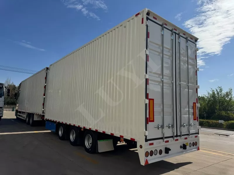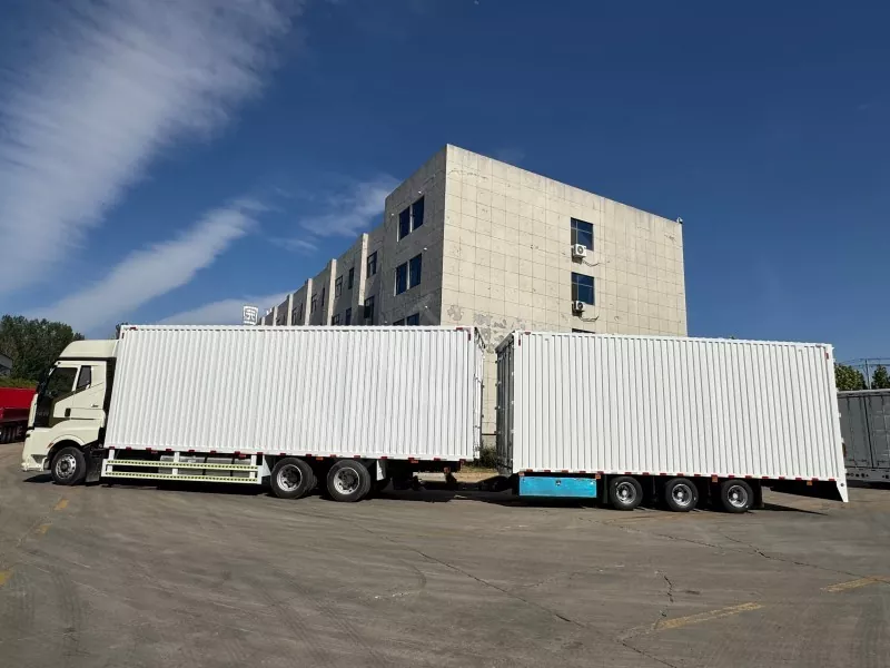 당사 탠덤 밴 세미트레일러의 전면 섀시 브랜드를 선택할 수 있으며, 고객 요구 사항에 맞는 밴을 설치할 수 있습니다. 후방 트레일러는 밴 세미트레일러인 3X13T Guangdong Fuhua 또는 BPW 브랜드이며 에어 서스펜션 또는 기계식 서스펜션이 옵션으로 제공됩니다. 12R22.5 타이어, 튼튼한 판 스프링, WABCO 릴레이 밸브, 24V 전기 회로, LED 램프 및 후면 컨테이너 스타일 이중 도어를 사용합니다. 이 차량은 특수 분말 분사 공정을 사용하며 중앙아시아 국가에서 좋은 고객 피드백을 받았습니다.
