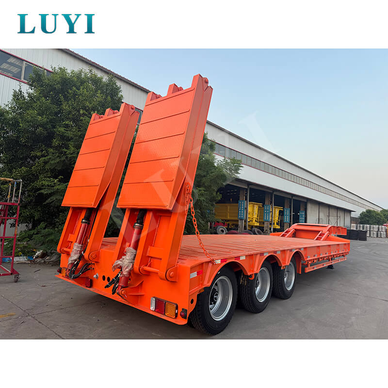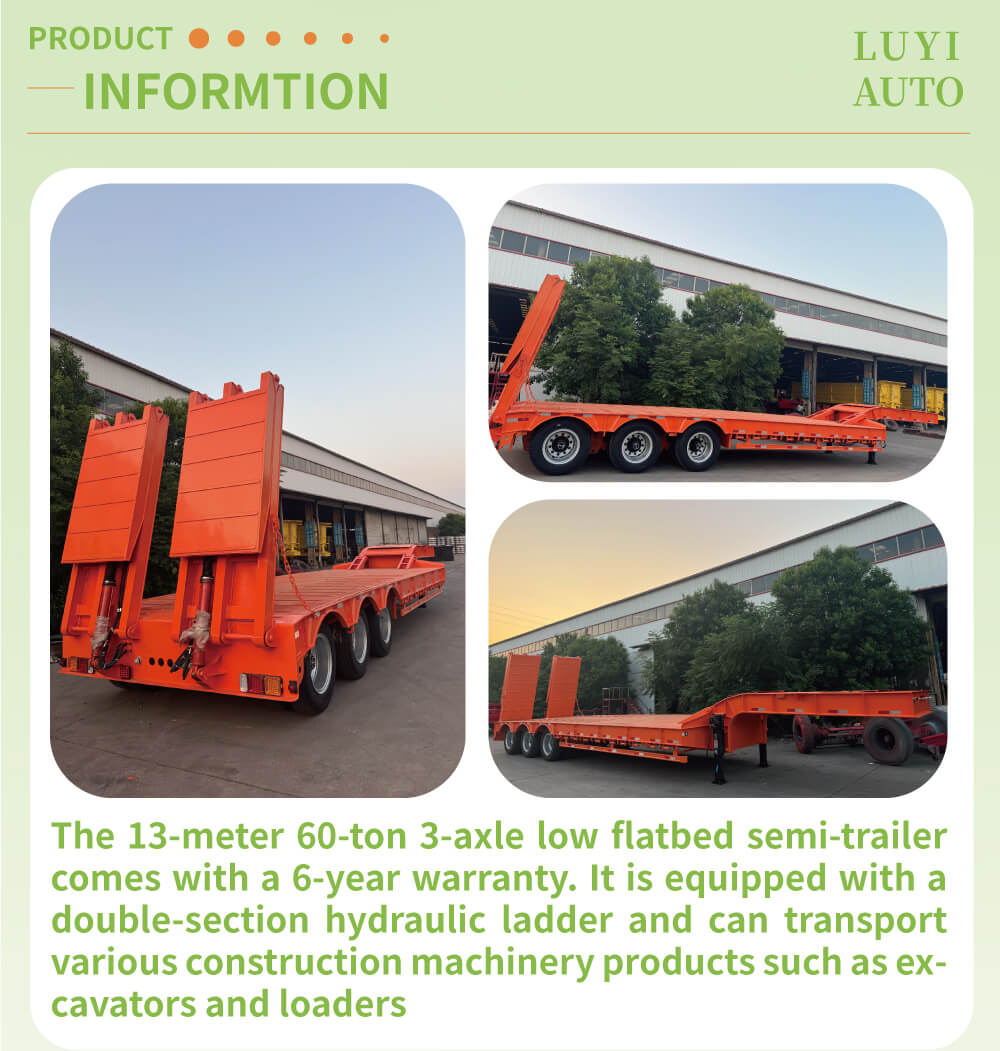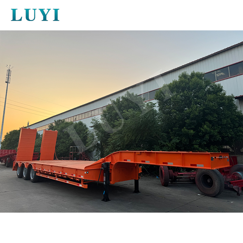 LUYI 3축 60톤 분리형 구즈넥 로우베드 세미트레일러는 중국 산동에서 생산되는 전문 화물 트레일러입니다. 본체는 고강도 강철로 만들어졌으며 크기는 1700030001500mm입니다. 구조가 견고하고 공간이 충분하여 무거운 화물을 안정적으로 적재할 수 있으며 다양한 트럭 견인 작업에 적응 가능