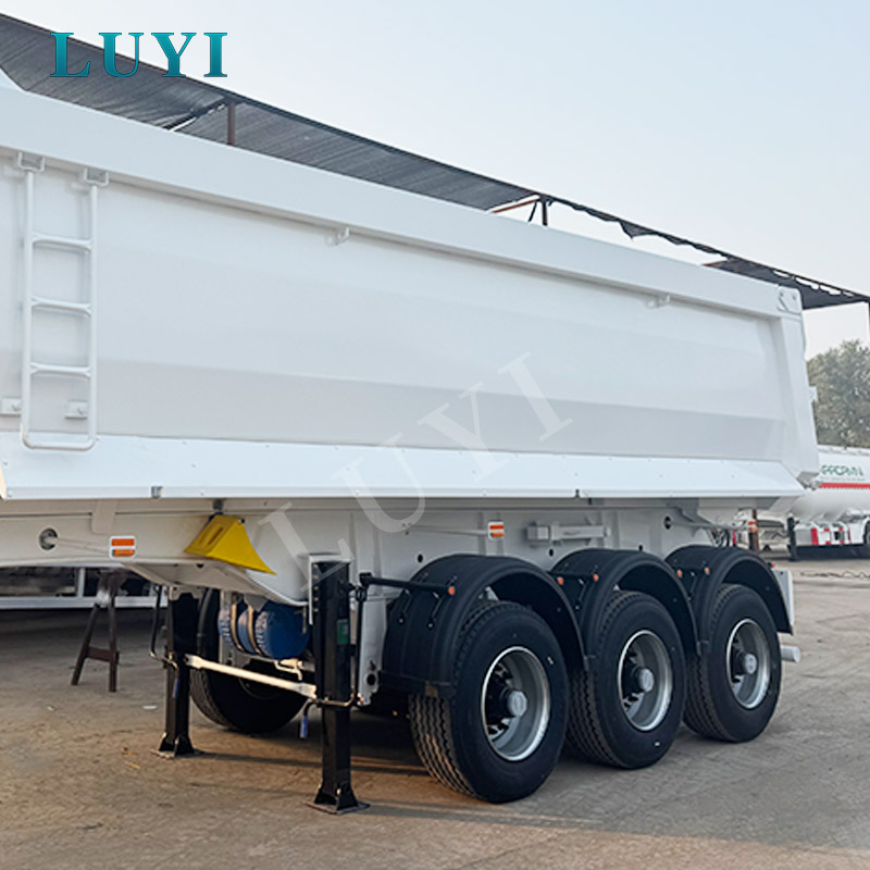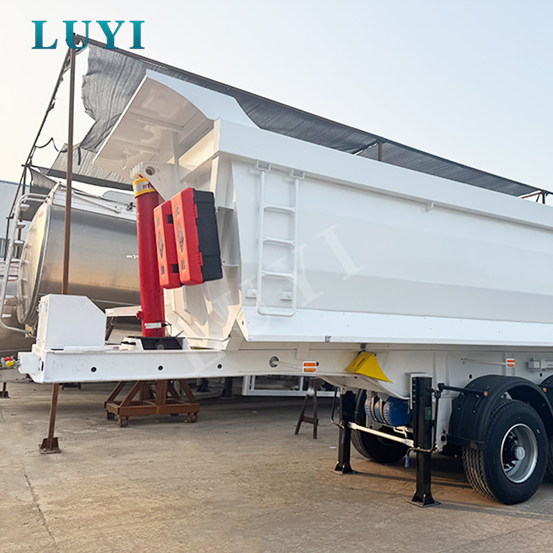 LUYI 3축 U자형 유압 조절식 후방 팁핑 세미 트레일러는 모래, 자갈, 곡물과 같은 자재 운송을 위해 특별히 설계된 효율적인 운송 장비입니다. 중국 산둥성에서 고품질 제조가 이루어집니다.